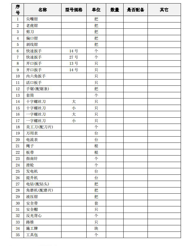 太陽能離網供電常規工具清單