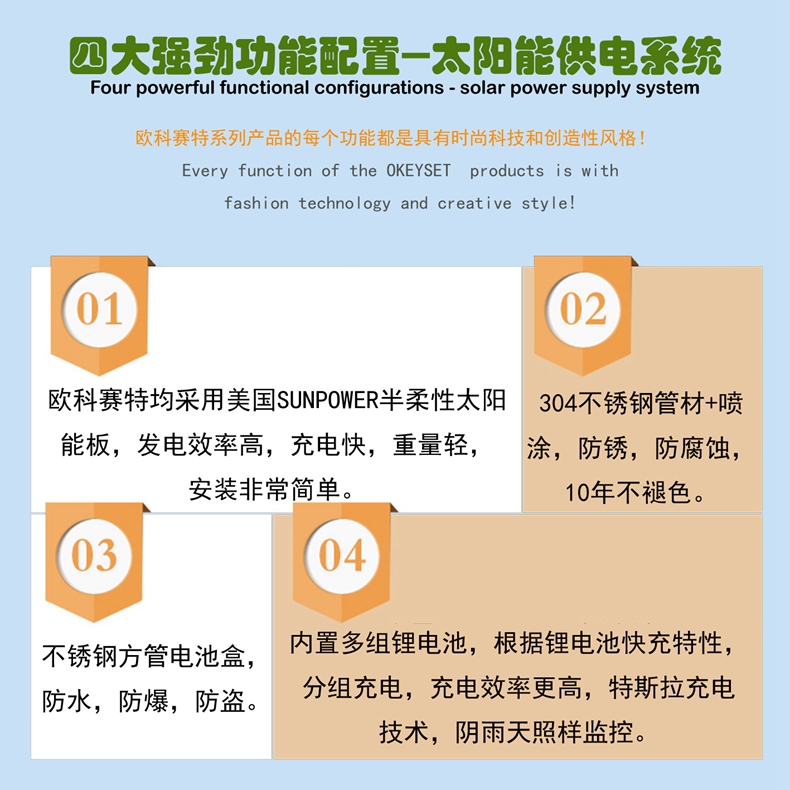 供電:美國SUNPOWER半柔性80瓦太陽能板,480WH鋰電池組,續航4天以上