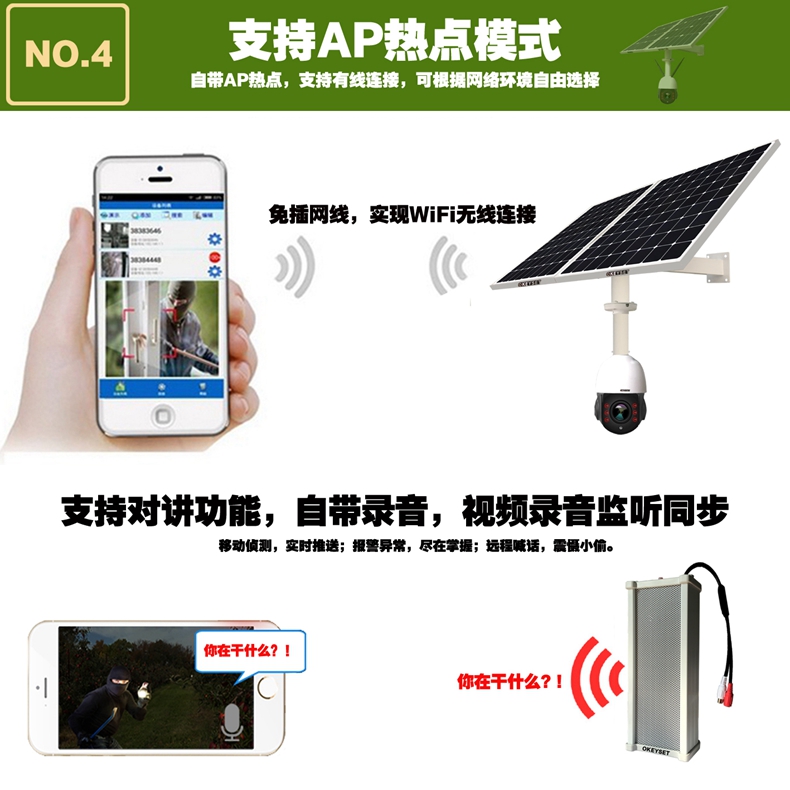 應用:項目工地,森林防火,礦上,魚塘,水庫,河道,農場,果園,養殖場,種植場等戶外無網無電的地方。